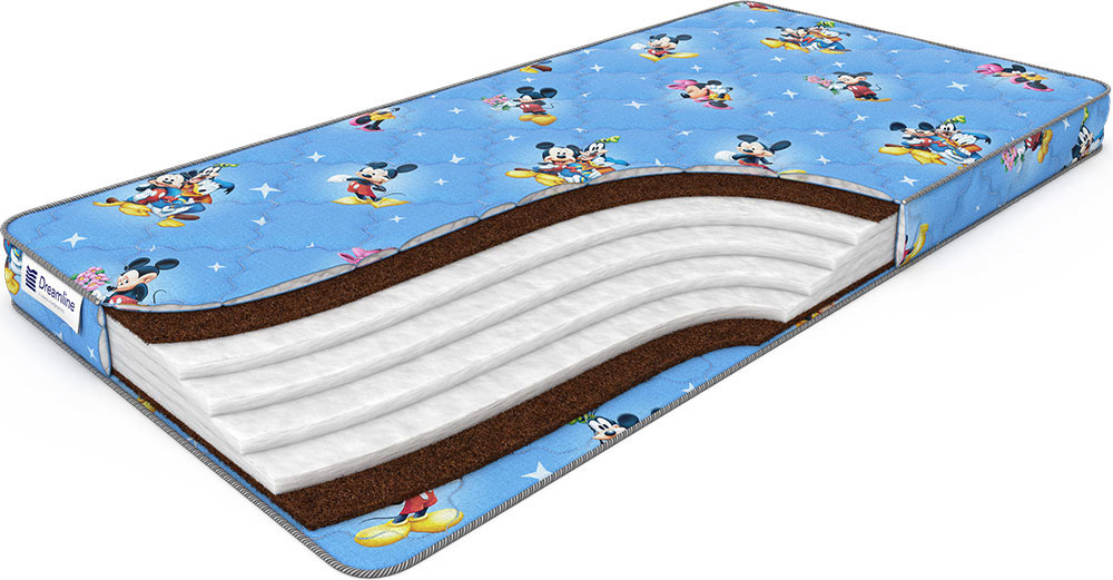 Детский беспружинный матрас Dreamline Baby Holl Hard специально разработанный для правильного формирования позвоночника ребёнка. Внутренний наполнитель состоит из четырёх слоёв холлофайбера – современного нетканого материала, часто выполняющего роль заменителя классической эластичной пены. Холлофайбер обладает большей степенью жёсткости, чем пена, что особенно важно для сбалансированного распределения веса тела по поверхности матраса и правильного формирования позвоночника ребёнка. Внешний наполнитель – натуральная кокосовая койра, пропитанная латексом, которая придаёт конструкции дополнительную жёсткость, приумножает ортопедические свойства матраса. В комплект входит чехол Cotton Baby, сшитый из приятной на ощупь из односторонней бязи яркой детской расцветки. Матрас рассчитан на ребёнка весом до 70 кг. *Внимание: Расцветка чехла может быть изменена по усмотрению производителя, подробности уточняйте у менеджера интернет-магазина.