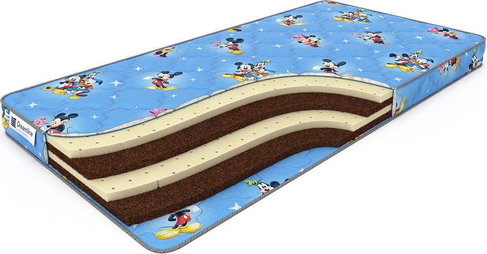 Детский беспружинный матрас Dreamline Baby Mix это разносторонний матрас разработанный специально для поддержания здоровья и комфорта ребёнка. При создании этой модели используется два различных по своим свойствам наполнителя, уложенные поочерёдно в четыре слоя. В результате мы получаем детский матрас, обладающий различной жесткостью сторон: - Сторона А – латексированная кокосовая койра обеспечивает правильное формирование позвоночника ребёнка. - Сторона Б – натуральный перфорированный латекс максимально точно принимает форму тела, способствуя комфортному сну. Отсутствие пружинного механизма существенно облегчает данную модель, и в тоже время детский матрас Baby Mix способен выдерживать нагрузку весом до 90 кг. на спальное место. *Внимание: Расцветка чехла может быть изменена по усмотрению производителя, подробности уточняйте у менеджера интернет-магазина.