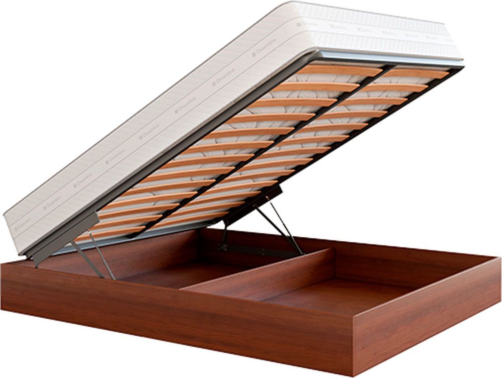 Кровать Куб представляет собой - металлическое основание с ламелями из березового шпона и ящик для белья, которые соединены специальным механизмом подъема, который рассчитан под вес матраса. Ящик изготавливается из цельноламельного массива бука, или ясеня, или мягколиственных пород древесины (*МЛПД). Стандартно предусмотрено основание Dream. У Кровати Куб вкладное дно. В связи с технологическими особенностями изготовления данной кровати, продольные царги производятся с выступом 1 см с каждой стороны относительно изголовья и изножья.
