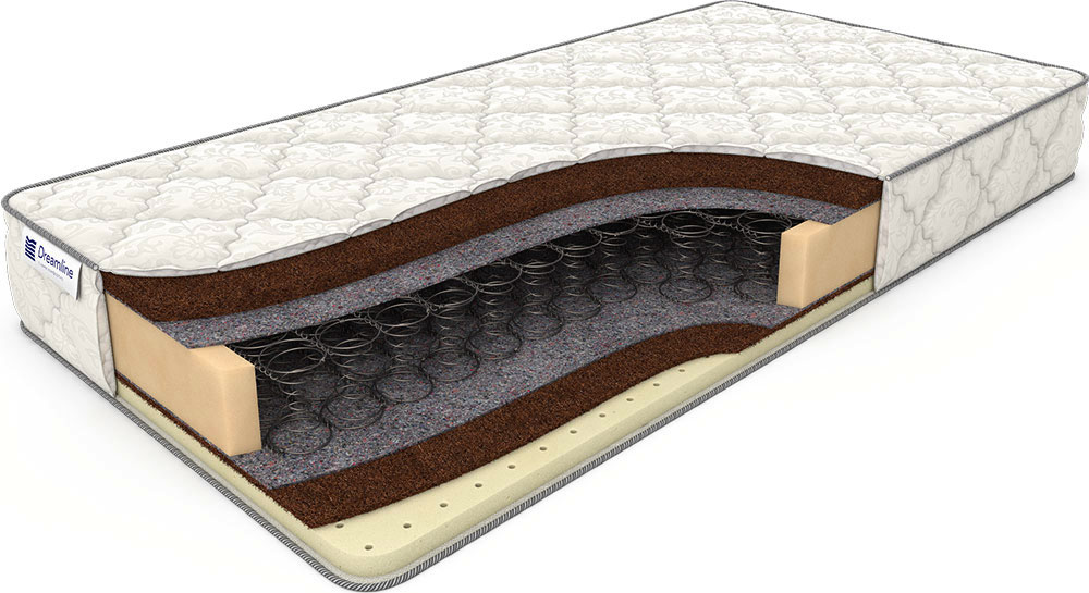 Смонтированный на классическом пружинном механизме Bonnel, данный матрас имеет поверхности с различными свойствами. Одна сторона матраса – максимальная жёсткость за счёт утолщённого слоя наполнителя из кокосовой койры. Другая сторона – сбалансированная анатомичность за счёт двух слоёв наполнителя: внутреннего слоя из кокосовой койры и внешнего из натурального латекса. Изолирующая прослойка из натурального льноджутового волокна надёжно отделяет металлическую сердцевину матраса от натурального наполнителя, способствуя долголетию матраса. Если вы хотите узнать, какие ещё факторы влияют на долголетие матраса и защитить его по полной программе, рекомендуем вам ознакомиться с ассортиментом наших наматрасников.
