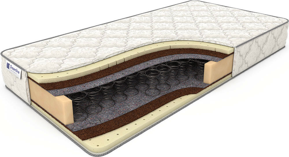 Смонтированная на зависимом пружинном блоке Bonnel, данная модель поразит вас сбалансированной жёсткостью и анатомичностью. Этот баланс достигается за счёт двойного слоя различных натуральных наполнителей. Внутренний слой – кокосовая койра, придающая конструкции жёсткость. Внешний слой – натуральный латекс обладающий удивительной анатомичностью, то есть способностью повторять форму лежащего на нём тела. Прослойка из льноджутового волокна изолирует металл пружинного механизма, не позволяя ему контактировать с внутренним наполнителем и способствуя долголетию матраса.