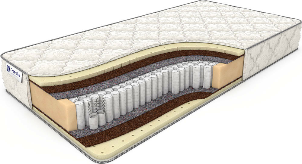 Особенности и преимущества модели: Матрас Dreamline Sleep Dream Medim S1000 отличается следующими эксплуатационными характеристиками: - Долгий срок службы до 15 лет; - Надежность, прочность; - Оптимальная жесткость, анатомичность; - Поддержка позвоночника. В Москве приобрести рассматриваемый матрас предлагает КОМПАНИЯ ДРИМЛАЙН по приемлемой цене. Поддерживающие свойства, жесткость и эластичность: Натуральные наполнители позволяют мышцам тела достичь максимального расслабления, придают модели жёсткость, упругость, необходимую для поддержания спины в горизонтальном положении. Наполнитель матраса: - Внутренний наполнитель из кокосовой койры (гипоаллергенная, выносливая); - Утолщённый слой внешнего наполнителя из натурального латекса (долговечный, качественный, пропускает воздух, влагу); - Термовойлок - изоляционный слой, представляющий собой плотный нетканый материал, обладающий высокой прочностью. Материал с плотной структурой не подвержен гниению, выдерживает значительные регулярные нагрузки, способствует продлению срока службы матраса. Пружинный блок: Представлен системой Мультипокет - 500 независимых пружин на 1 кв.м. размещаются в специальных кармашках из прочного материала. Пружины работают индивидуально, при воздействии на них силы. Благодаря чему обеспечивается оптимальное положение тела для комфортного отдыха и поддержки позвоночника. Чехол: Изготовлен из стеганного холконом трикотажа. Объемный, мягкий, приятный на ощупь, гипоаллергенный. Дополнительно защитить матрас от воды и загрязнений помогут съемные наматрасники. Купить их можно в КОМПАНИИ ДРИМЛАЙН (г. Москва).