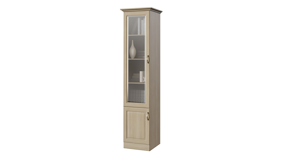 Одностворчатый шкаф библиотека Эдем, выполненный в классическом стиле, хорошо дополнит интерьер вашего кабинета или комнаты и создаст целостную картину вместе с другими предметами мебели коллекции Эдем. Подобрать изделие, идеально подходящее под ваш индивидуальный интерьер, вам позволит широкая цветовая палитра. Ведь в зависимости от цвета мебели можно достичь разного настроения в комнате: от расслабленного и спокойного до строгого и серьёзного. В дверки встроено стекло с фацетом, которое придаёт шкафу лёгкости и делает его более изящным. Шкаф может быть изготовлен полностью из натурального массива дерева бука или ясеня. Даже полки шкафа сделаны из целостного массива, что делает вид шкафа более презентабельным и добротным. При желании немного удешевить изделие, мы можем изготовить боковины шкафа из ЛДСП. Обращаем ваше внимание, что такое решение никак не повлияет на визуальный вид товара. Внешние габариты библиотеки: 8 см. к ширине по внешним габаритам карниза. Требуется сборка.