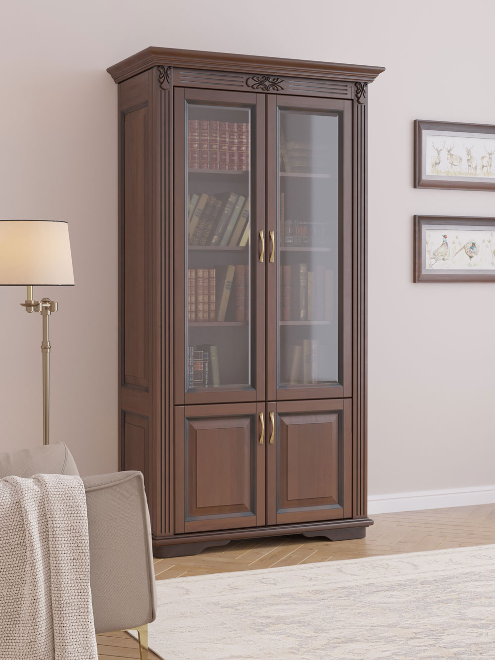 Двухстворчатый шкаф — создаст уют и рабочую обстановку в вашем доме одновременно. Строгость линий, выверенность пропорций и лаконичность форм изделия, в сочетании с единым стилем коллекции «Палермо» является визитной карточкой библиотеки Палермо от DreamLine в вашем доме. Фасады шкафа имеют рамочную конструкцию в которую интегрировано стекло с фацетом. Гарантия — 24 месяца. Шкаф изготавливается только с распашными створками в нижней антресольной части. Требуется сборка.