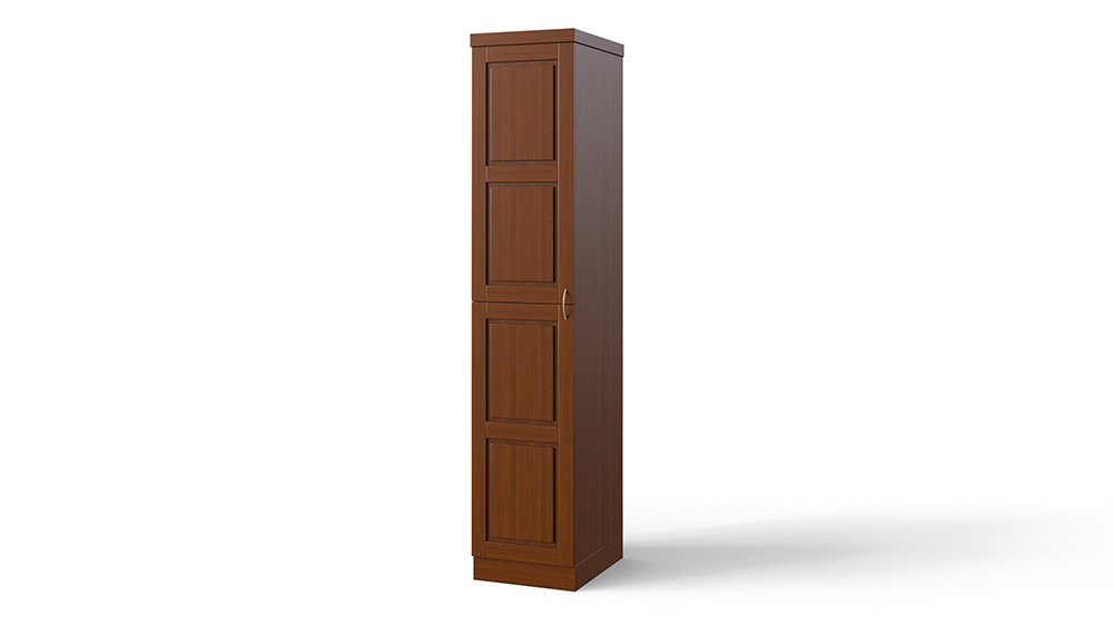 Малогабаритный и функциональный шкаф, созданный в едином стиле с коллекцией Варна — изделие без которого не возможно себе представить спальню. Корпус шкафа может быть изготовлен как из массива бука и ясеня, так и из массива мягколиственных пород древесины, что делает его стоимость еще более демократичной. Фасад шкафа — это единая по высоте шкафа створка филенчатой конструкции, разделенная на 4 визуально равные части, которые могут иметь встроенные зеркала как на лицевой части фасада — по размеру филенчатой части, так и на внутренней стороне фасада. Стандартно предусмотрено две комплектовки шкафа: с антресольной секцией вверху (1-3) или внизу (1-1). По желанию шкаф может быть оснащен любым количеством полок.