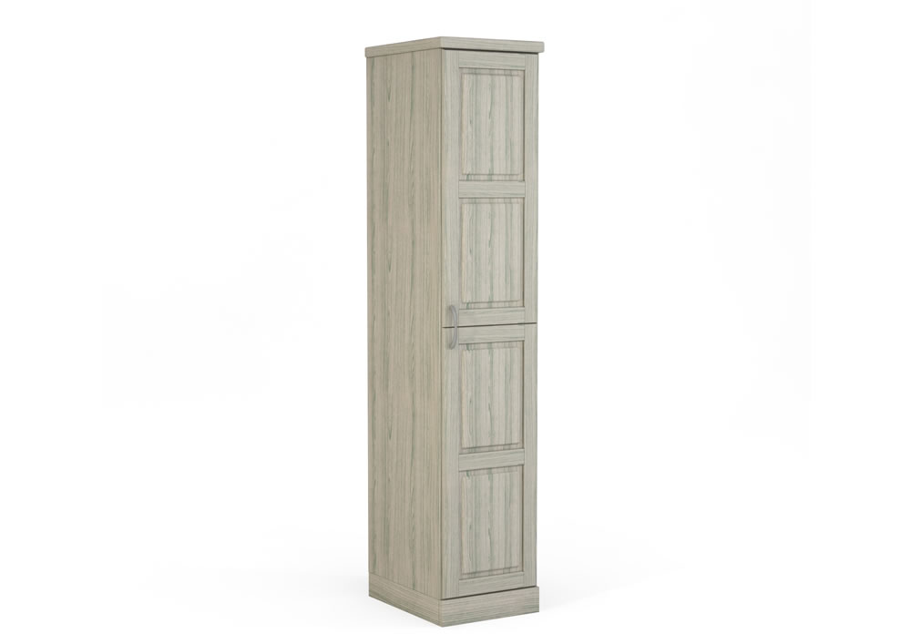 Малогабаритный и функциональный шкаф, созданный в едином стиле с коллекцией Варна — изделие без которого не возможно себе представить спальню. Корпус шкафа может быть изготовлен как из массива бука и ясеня, так и из массива мягколиственных пород древесины, что делает его стоимость еще более демократичной. Фасад шкафа — это единая по высоте шкафа створка филенчатой конструкции, разделенная на 4 визуально равные части, которые могут иметь встроенные зеркала как на лицевой части фасада — по размеру филенчатой части, так и на внутренней стороне фасада. Стандартно предусмотрено две комплектовки шкафа: с антресольной секцией вверху (1-3) или внизу (1-1). По желанию шкаф может быть оснащен любым количеством полок.