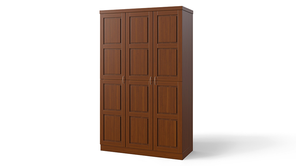 Малогабаритный и функциональный шкаф, созданный в едином стиле с коллекцией Варна — изделие без которого не возможно себе представить спальню. Корпус шкафа может быть изготовлен как из массива бука и ясеня, так и из массива мягколиственных пород древесины, что делает его стоимость еще более демократичной. Три распашных фасада шкафа — это единые по высоте шкафа створки филенчатой конструкции, разделенные на 4 визуально равные части, которые могут иметь встроенные зеркала как на лицевой части фасада — по размеру филенчатой части, так и на внутренней стороне фасада. Стандартно предусмотрено две комплектовки шкафа: с антресольной секцией вверху (3-3) или внизу (3-1). В двустворчатой секции шкафа предусмотрена штанга для плечиков. По желанию шкаф может быть оснащен любым количеством полок.