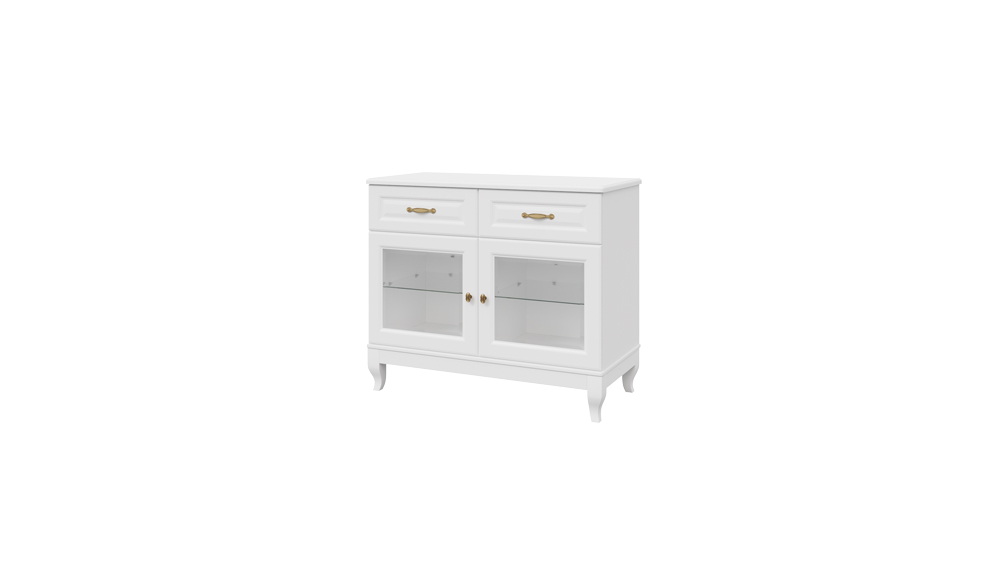 Самый небольшой Комод Греденция в коллекции Эдем сделан специально для небольших и уютных гостиных или гостиных совмещенных с кухней. У него 2 вместительных выдвижных ящика и 2 отсека с полками по середине.