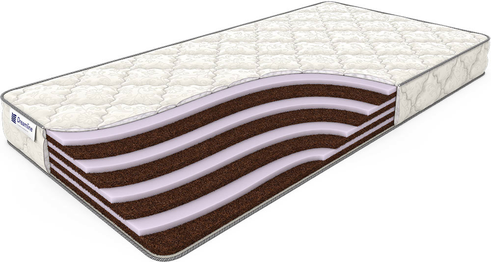 Двухсторонний матрас с ортопедическими свойствами, в состав которого попеременно входят двухсантиметровые слои кокоса и пенополиуретана (ППУ). Кокосовая койра — 100 % натуральный наполнитель для матрасов. Она производится из волокон кокосового ореха, произрастающего преимущественно на Шри-Ланке, а также в Индии. В свою очередь ППУ устойчив к деформации и давлению, выдерживает большие нагрузки. Это износостойкий и эластичный материал высокой плотности. Матрас поставляется в чехле LUX, который выполнен из хлопкового жаккарда, простеганного на холконе - современном гипоаллергенном материале плотностью 200 г/кв. м. Данный чехол износостоек и обладает приятной текстурой.