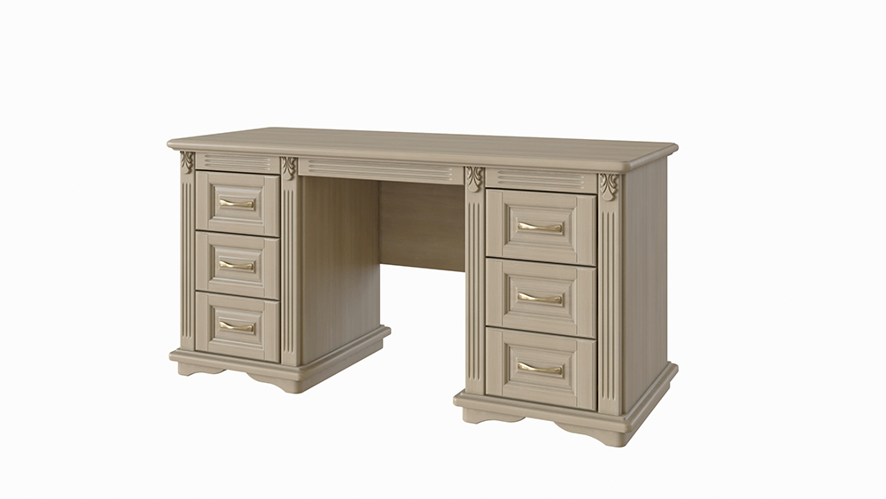 Стол руководителя Палермо - Новинка в коллекции мебели для спален от фабрики DreamLine. Стандартно, данная модель изготавливается с тумбовой частью с распашной дверью, за которой внутренняя секция разделена на две равные доли полкой - одна сторона, другая сторона (тумбовая часть) - с тремя выкатными ящиками. Сборка не требуется.