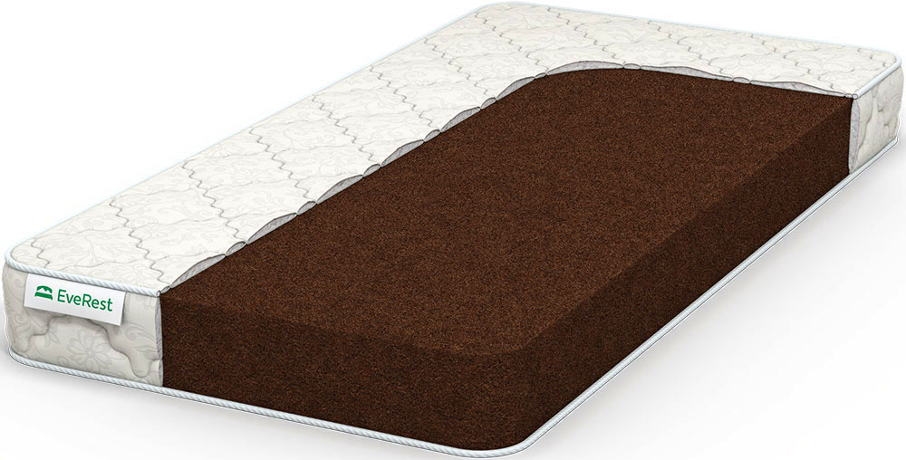 Беспружинный матрас высотой 15 см с ортопедическими свойствами. В его основе лежат пять настилов кокосовой койры. Относится к жестким моделям. Койра — это жесткое высушенное волокно межплодника кокоса. Этот природный материал характеризуется хорошей воздухопроницаемостью и способностью быстро испарять влагу. Волокна латексированы, то есть скреплены латексом в единую плиту. Таким способом повышается пластичность и долговечность койры. Толщина каждого настила — 3 см. Жесткий матрас равномерно распределяет нагрузку по спальной поверхности и снимает нагрузку с позвоночника. Модель подойдет людям с проблемной спиной и всем тем, кто предпочитает твердое спальное место. Выдерживает нагрузку до 140 кг. В изготовлении чехла использован прочный и износостойкий жаккард, стеганный крупными ромбами.