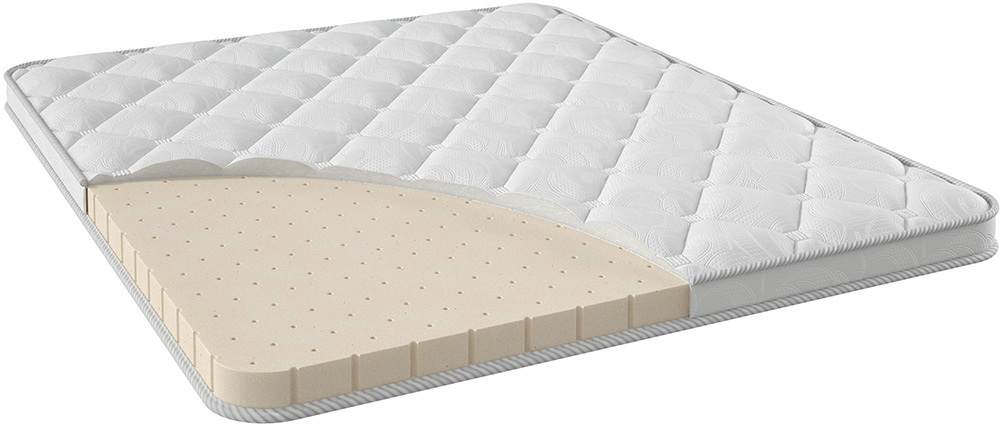 Два слоя перфорированного латекса в корректирующем матрасе Фаворит хорошо нивелируют неровности вашего спального места и делают его более удобным и мягким. Латекс — безопасный натуральный материал, полученный из вспененного натурального сока каучукового растения гевеи. Такой корректирующий матрас поможет вам обрести спокойный и комфортный сон. • Чехол — хлопковый жаккард, простёганный на 100 гр. синтепоне, что придаёт еще больше мягкости корректирующему матрасу; • Удобно крепится к вашему основному спальному месту с помощью эластичных лент по углам; • Защитит ваш основной матрас от загрязнений и других повреждений; • Можно использовать на диванах и для выравнивания поверхности; • Транспортируется в скрученном виде, что позволит удобно перевозить его при необходимости.